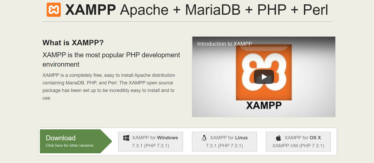 Αφού μεταφέρουμε το συμπιεσμένο αρχείο του Wordpress στην επιφάνεια εργασίας μας, μεταβαίνουμε στην ιστοσελίδα του XAMP www.apachefriends.org υπηρεσίας που μας επιτρέπει να δημιουργήσουμε μια βάση δεδομένων για την ιστοσελίδα μας και να τρέξουμε το site μας στον υπολογιστή μας. Στη συνέχεια, πατάμε το πλήκτρο λήψης του προγράμματος για το λειτουργικό μας σύστημα (π.χ. Windows).